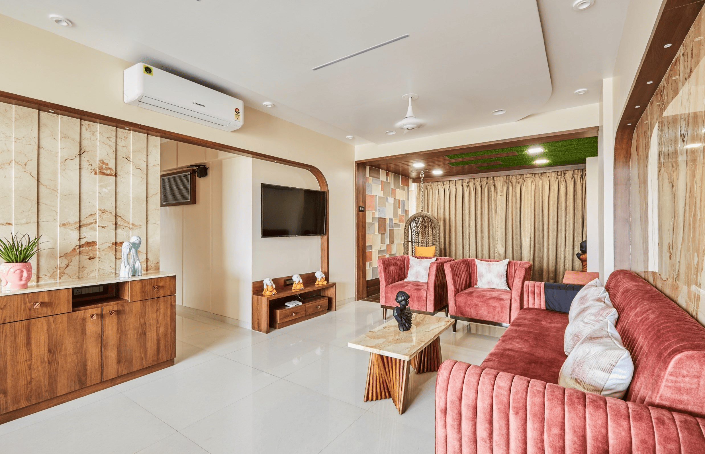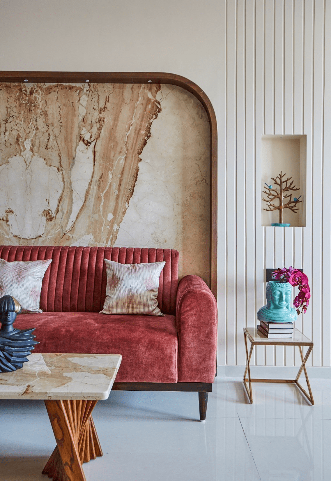 Luxe apartment with carefully curated details, bringing the outside into the inside with ample natural light and air. The living room comprises pastel shades with a pop of plush fabric sofas and fresh colors for the bedrooms.